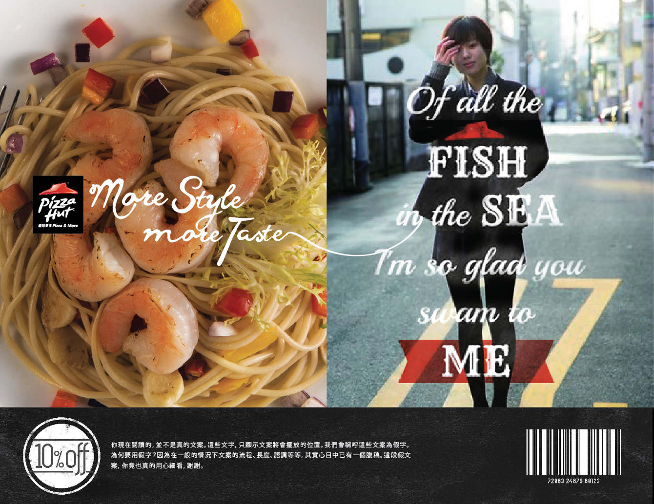 The right side demonstrate the variety foods served by PizzaHut and real life faces are used on the other side to bring up the very authentic "you".